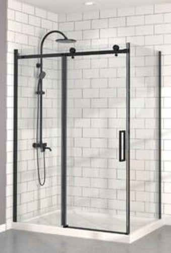 Bellini 2.0 48" Matte Black Sliding Shower Door With 36" Return